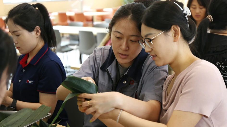 “花花世界,鴛鴦蝴蝶?!卑殡S著悠揚婉轉(zhuǎn)的橫笛獨奏開場,精彩的包粽子比賽拉開帷幕。比賽過程中各組成員分工明確、默契合作,包粽子新手虛心請教,老手耐心示范,從生疏到熟練,全程彰顯“勤學”與“奮斗”的企業(yè)文化底色。粽葉翻飛間,歡聲笑語不斷,團隊凝聚力悄然升溫。